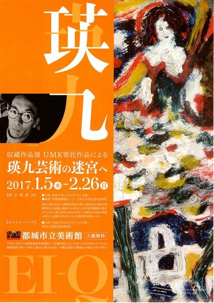3回に渡って宮崎県の都城市立美術館の展覧会を紹介してきた。こちらの美術館に訪問して感じたことは、郷土の美術家を展示することが実に自然であるということ。家族写真を飾るかのように、シンプルで気持ちのいい雰囲気があった。いつからか地方美術館でも人気取りのための展示と高額な観覧料を払わないと入場できなくなってきたが、ここでは特別展以外は従来の博物館法に近いスタンスで作品を無料公開している。また、どこの館も展覧会事業費や、まして作品購入費は開館時よりもグッと落ち込んでいるはずであるが、それを見かねてか、テレビ宮崎(UMK)が代わって作品をコレクションしている。良いバランスで美術館が保たれている。薩摩藩の気風によるものかもしれない。平日の昼下がり、確かに来館者は少なかった。しかし、2人組のご婦人が「瑛九さん…」と親しげに呼んで作品を覗く様子に、ほっとする思いがした。