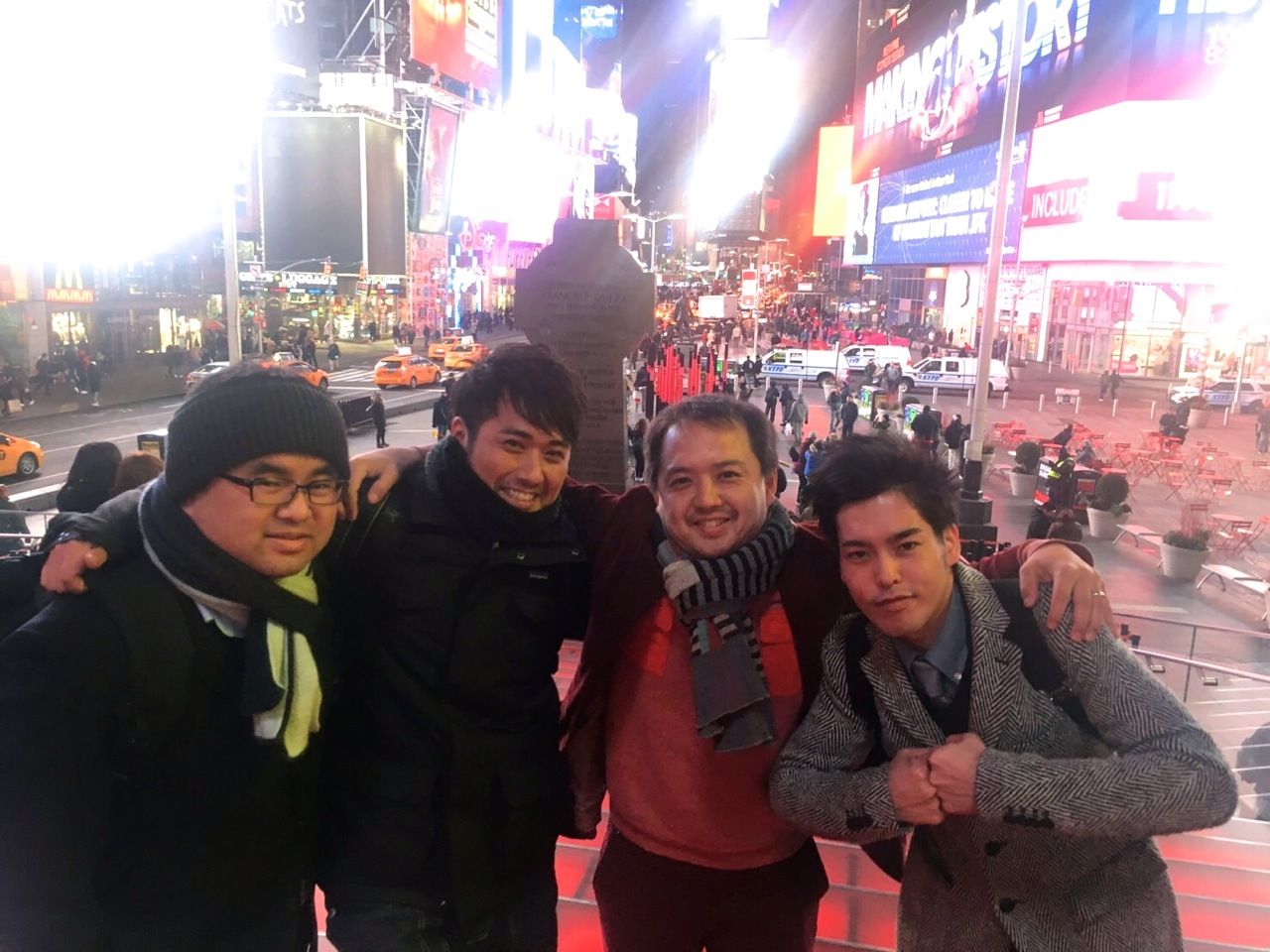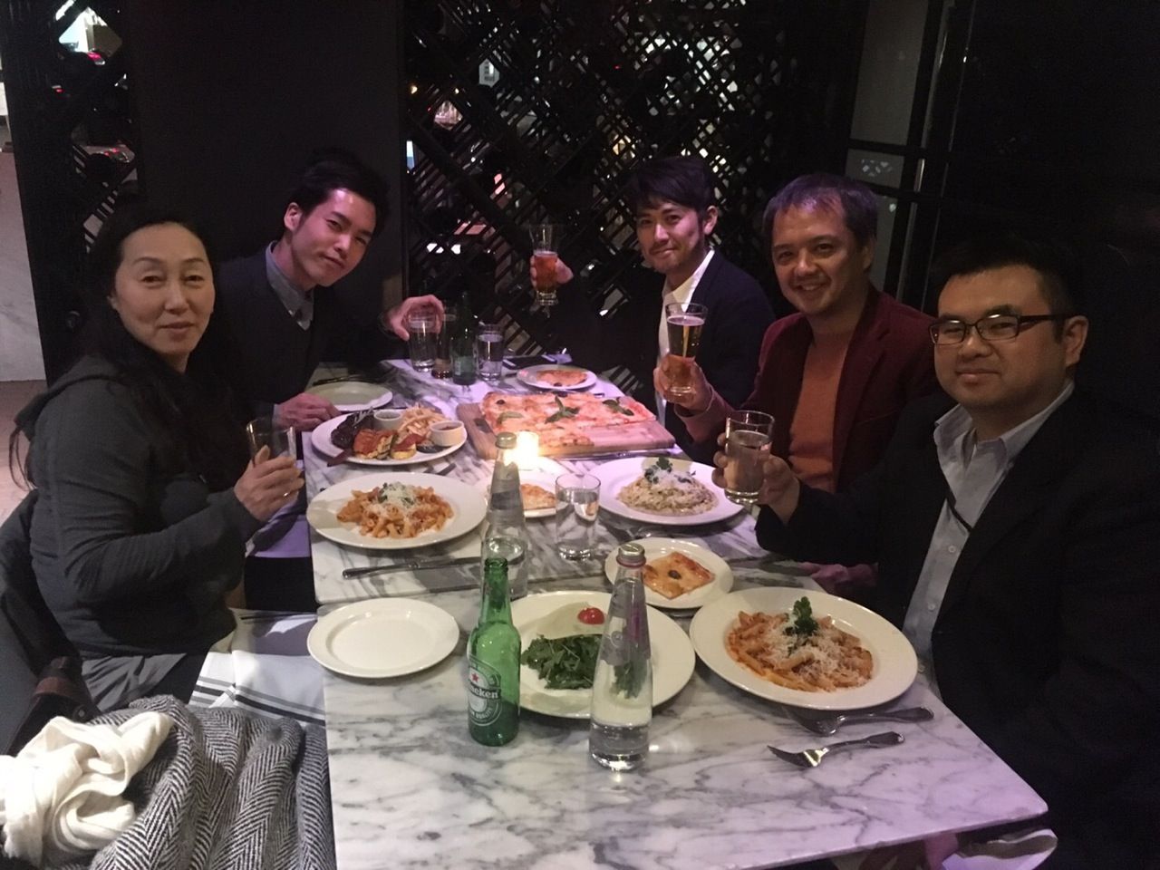 夜、光嶋さんが明日の夜は一緒に晩御飯を食べられないという事で、せっかくニューヨークに来たのだから一度タイムズスクエアまで行ってミーハーにみんなで記念写真撮って飯を食おうという事になり、ちょうどフェア終了間近に来られたNY在住の大山さんがお店を探してくださり、車に乗せて頂いて、雰囲気の良い店でイタリアンを食べる事ができました。