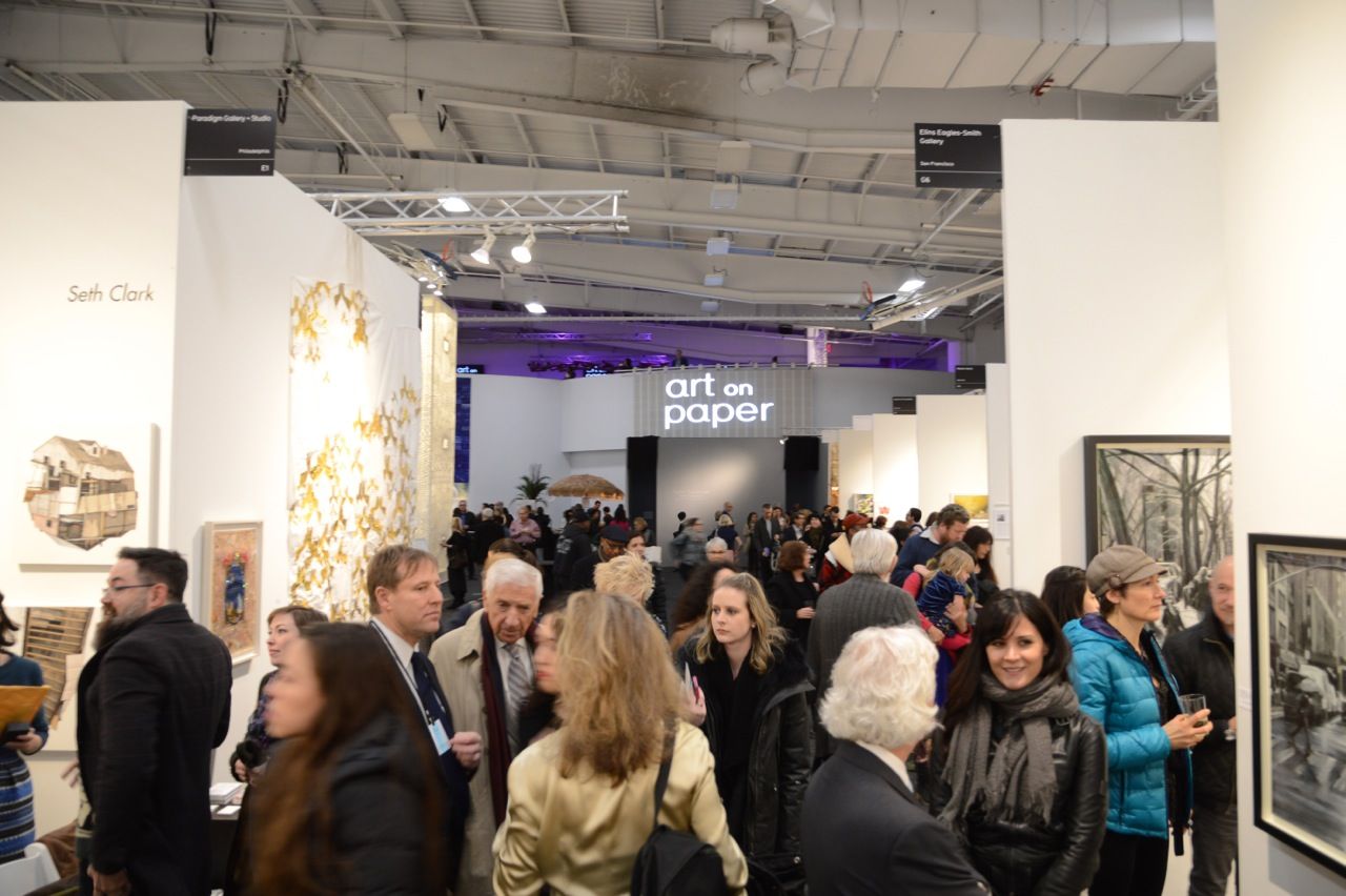 6時にプレビュー開始、今まで主にアジア圏のアートフェアに色々と参加させて頂いた経験では、VIPプレビューはそれほど混雑しないイメージだったのですが、このart on peparはまだ新しいフェアなので、とにかくスタートを盛り上げる為に集客優先でVIPチケットをかなり多く撒いたそうで、6時のオープンと同時にもの凄い勢いで来場され、あっという間に大混雑状態で、とても活気がありました。