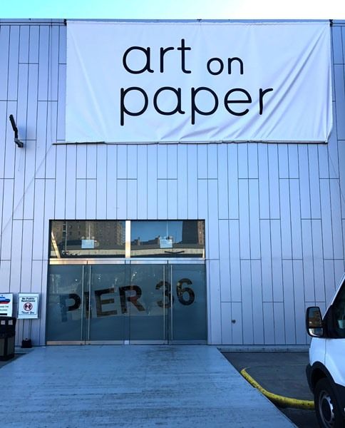 今回、僕は昨年、自ら福井県武生に行って漉いた越前和紙に描いた幻想都市風景のドローイングを五枚もって、”Art on Paper”というアートフェアに参加させてもらった。会場は、ローワー・イースト・マンハッタンに位置するPier36。イースト・リヴァーが目の前に流れる港の巨大倉庫の中に50近いギャラリーが世界中から集まって、「紙に施されたアート」というコンセプトで、綺麗に区画されたブースに渾身の作品たちが並べられた。