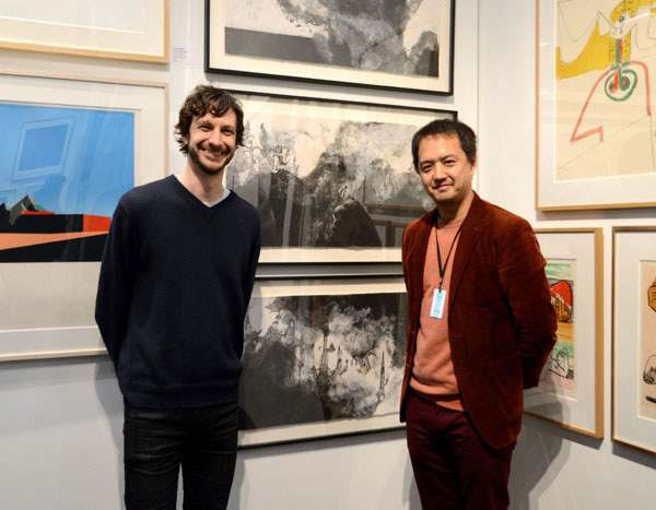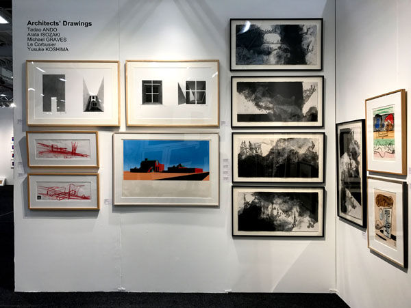木曜日のVIPオープニングから凄まじい数の来客があり、僕はギャラリー「ときの忘れもの」ブースで、「Architects Drawing(建築家のドローイング)」と題した壁の前で、自作を中心に接客することとなった。2012年より2年おきに計3度の個展をやらせてもらった経験とは、全く次元の違う体験となった。いうなれば、アートフェアは、世界のアート市場における「戦いの場」であり、容赦なく品定めされる目の肥えたお客さんたちと、作品、ただそれだけを頼りに関係を築いていく、ものすごくスリリングな体験であった。見るからに富裕層のようなファッションや佇まいの方から、自身も作品をつくるアーティスト、画廊関係者など、多種多様な人々が訪れた。引っ切り無しにしゃべることは、大変だが、とてもいい勉強になった。