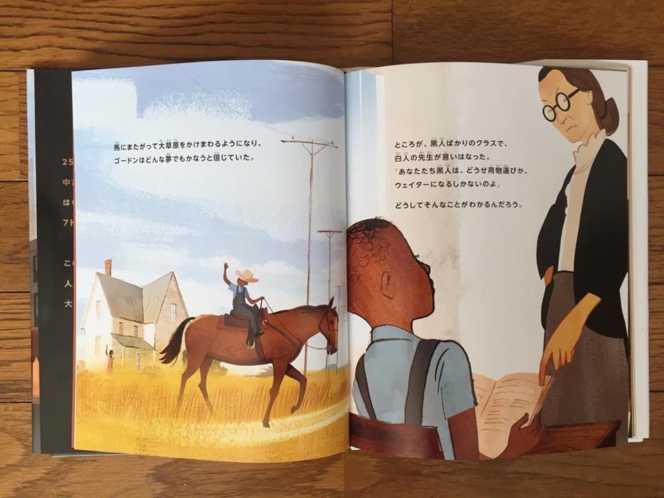 本書の原書は、「Gordon Parks: How the Photographer Captured Black and White America(ゴードン・パークス:写真家がいかにして黒人と白人のアメリカをとらえたのか)」という題名で2015年に刊行されました。近年、近年、写真家、美術家の伝記絵本が欧米の出版社から相次いで出版されており、この本はその流れに位置づけられるものでもあります。世界規模の政治的な動乱が続き、移民排斥や人種差別の問題がクローズアップされている状況で、そういった問題の歴史的な背景を、子どもたちや若い世代にどのように伝えるのか、ということが大きな課題になっていることの証左と言えるでしょう。