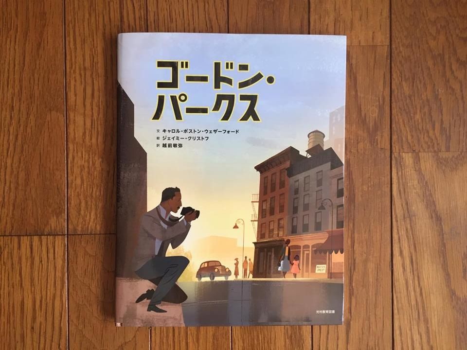 今回紹介するのは、伝記絵本『ゴードン・パークス』(光村教育図書、2016)です。ゴードン・パークス(Gordon Parks、1912-2006)はアフリカ系アメリカ人の写真家で、1940年代初頭からフォトジャーナリズム、ファッション写真などの分野で活躍し、『ライフ』誌でアフリカ系アメリカ人初の専属写真家兼記者として活躍し、公民権運動、貧困問題に関するフォトエッセイを発表したことで知られています。また、写真家としてのみならず、小説や詩、作曲、映画の制作も手がけ、映画『黒いジャガー』(1971)の監督としても知られています。絵本の著者、キャロル・ボストン・ウェザーフォードも、アフリカ系アメリカ人の著述家で、歴史や芸術家に関するテーマで児童文学作品を手がけており、最近では、写真家ドロシア・ラングの伝記絵本『Dorothea Lange The Photographer Who Found the Faces of the Depression』(2017)を発表しました。絵はイラストレーターのジェイミー・クリストが手がけており、登場人物の表情とともに、20世紀前半のアメリカの街の光景を情感豊かに描いています。