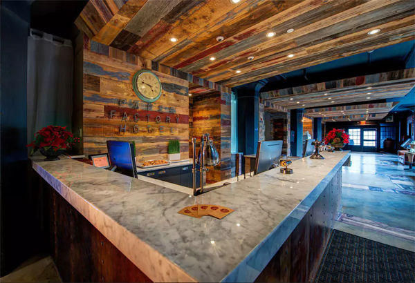 今回自分が宿泊したのはPaper Factory Hotelという、読んで字のごとく元々は製紙工場だった建物をホテルに改装した所で、場所はマンハッタン島の東、ロングアイランドに位置しています。自分は価格とマンハッタン島までのアクセスでこのホテルを選びましたが、中々に洒落たデザインで部屋も広々としており、快適に過ごせました。部屋に冷蔵庫がないことと、シャワーヘッドが固定式だったことだけは減点材料でしたが。