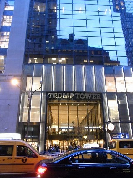 トランプ・タワー入り口。建てた本人はあれだけ好き勝手やってるのに、よくまだ襲撃されてないなと物騒な考えが過ったり。