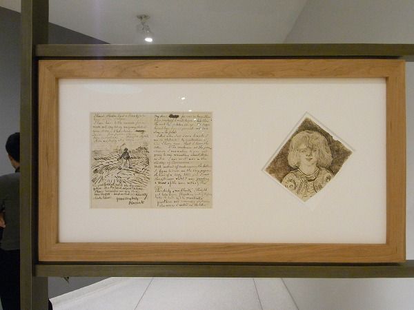 友人に向けて手紙を書こうと思う度、制作に気を取られてしまうと書きつつ、《種をまく人》や《少女の頭》のスケッチが描かれており、ゴッホの創作意欲の高さが窺えます。