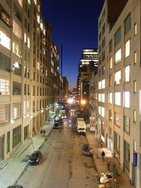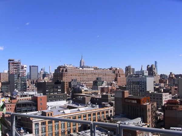 夕暮れ時のチェルシー画廊街。ハイラインの上で休憩中に撮影しました。