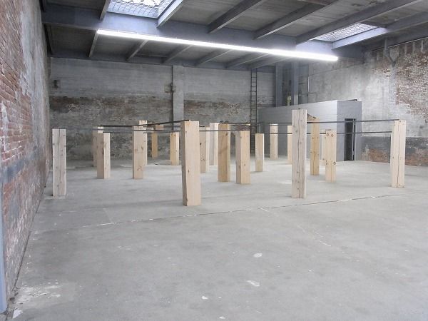 こちらは以前ビーコンの方を記事にしたDIA Foundationのチェルシー支部が開催していた菅木志雄展。6点中5点は60年代から70年代に制作された作品でしたが、この写真に写っている"Law of Halted Space"はこの企画のために2016年に制作された最新作です。