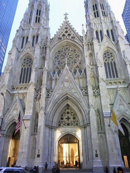 聖パトリック大聖堂。スカイスクレイパーの谷間(というほどのこの建物も背は低くないですが)にこのような中世的外観の建物があるのもニューヨークならではというイメージ。