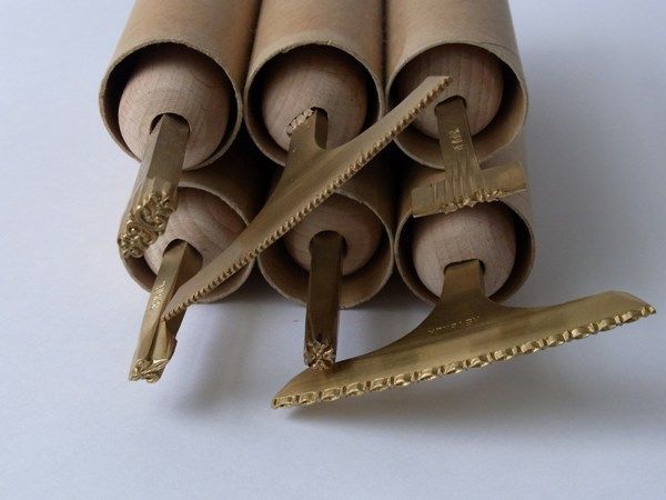金箔押しにより紋様付けをするドリュール、革を細工して貼り込むモザイクなどの、装飾の総称。