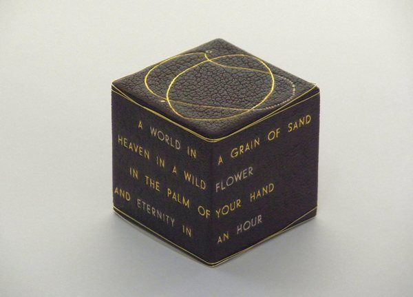 日常でもデスク周りで使える文鎮にテクスト(ウィリアム・ブレイク)を箔押ししました。