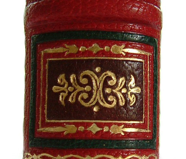 見返しきき紙(表紙の内側にあたる部分)に革を貼る装幀方法。
