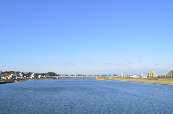 現在の橘橋から望む大淀川風景鈴木氏、佐々木学芸員(県立美術館)、祝迫学芸員(都城市立美術館)に瑛九ゆかりの地を質問したとき、必ず出てきた場所が「橘橋」であった。評伝でも度々出てくる「大淀川」に掛かる橋で、宮崎市街と都城市・鹿児島方面を結んでいる。瑛九は、宮崎を訪れた友人を橘橋の袂に広がっている河原によく連れて行ったようだ。