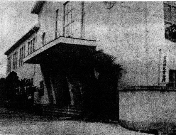 1945年頃の教育会館の外観写真である。教育会館は、昭和7年頃教員と県民の有志の資金援助で建てられた。正面玄関の二階部分に丸窓があるモダンな建物で、戦災を免れるも2000年に入って老朽化のため解体された。P.宮崎商工会議所(pp.314-315)