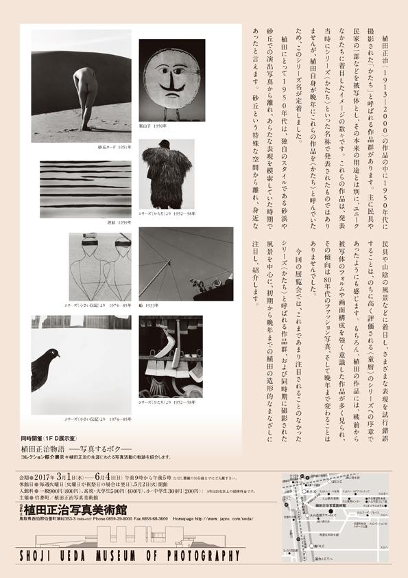いつでも植田正治の作品を見られる美術館で、現在は<植田正治の「かたち」 写真における造形表現>展が開催されています(2017年6月4日まで、火曜日(祝祭日の場合は翌日)は休館)。