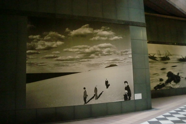 都写美クロージングパーティ101Fメインエントランスへと続く外壁には、ロベール・ドアノー、ロバート・キャパ、植田正治の大型パネルが展示されています。