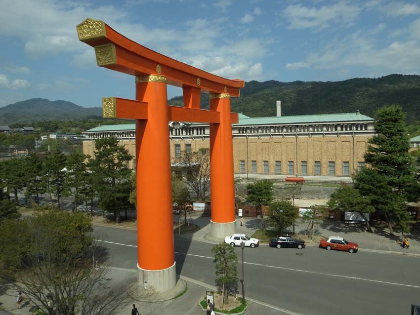 京近美4階からの眺望:平安神宮大鳥居 (1929年4月10日竣工報告祭)後方:京都市美術館 (1933年竣工、旧大礼記念京都美術館)