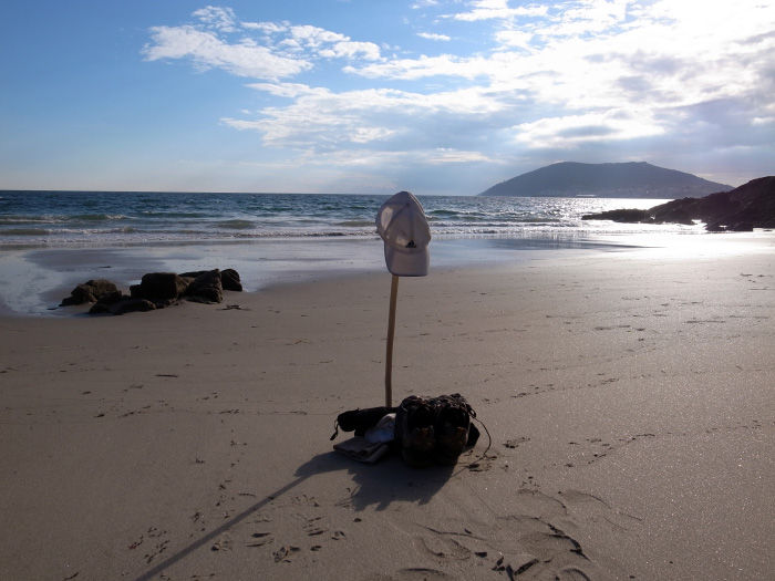 砂浜を散歩し、巡礼で使ったものを持って小さな海岸へ向かう。かつての巡礼者はすべての持ち物をフィステーラの海岸で燃やしたという。今までの自分から新しい自分に変わるため、過去を捨て去り、未来を生きるため。現代ではさすがにすべてを燃やすわけにはいかないので、Tシャツを燃やすだけにしておく。杖を砂浜に立て、燃える火を見つめていると長かった巡礼を思い出した。