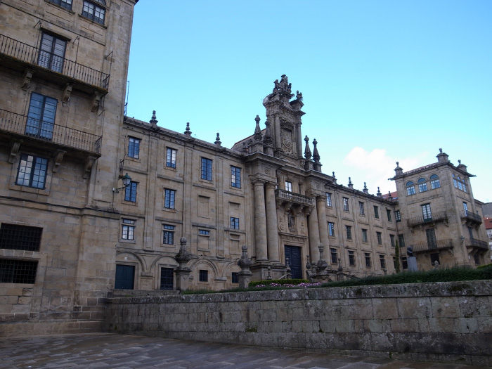 「サンティアゴ巡礼案内書」によれば「コンポステーラの町は、サールおよびサレーラなる二つの川に挟まれて建設されたものである。サール川は東側、喜びの山(モンテ・デ・ゴソ)と町との間を流れ、他方サレーラはその西側を流れる。街には七つの扉ないし入り口がある。その第一はフランスの門と言われる」(柳宗玄『サンティヤーゴの巡礼路』所収)とある。いずれも現存してはいないが、地名として残る「巡礼路の門」(ポルタ・ド・カミーニョ)がこの「フランスの門」つまり「フランス人の道」への門で、石畳の旧市街地はここから始まっている。狭い道のごちゃごちゃした旧市街地を抜けてカテドラルに到着する。