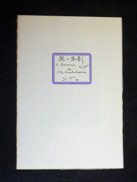 1984年の末頃、自由が丘画廊に瀧口関連の作品を探している旨電話と手紙で伝えたところ、しばらくして画廊主の実川暢宏さんから速達の返事が届いた。その中には先の「小展示」におけるリーフレットと瀧口のオブジェの写真が同封されていた。オブジェはある関係者から預かったもので売価も記されていた。12センチ四方の木箱の中に鳥の羽根とバラの花が白い台紙の上に置かれ、「誰のものか、これは? 瀧口修造 (日付) 綾子へ 庭で拾う」とペン書きの献辞があり、月日は判読できないがその下に‘73と書かれている。1973年といえばマルセル・デュシャン大回顧展のために渡米し「扉に鳥影」が作られた時期と重なり、綾子夫人への贈物であるこのオブジェはデュシャンとの関連も伺わせる。