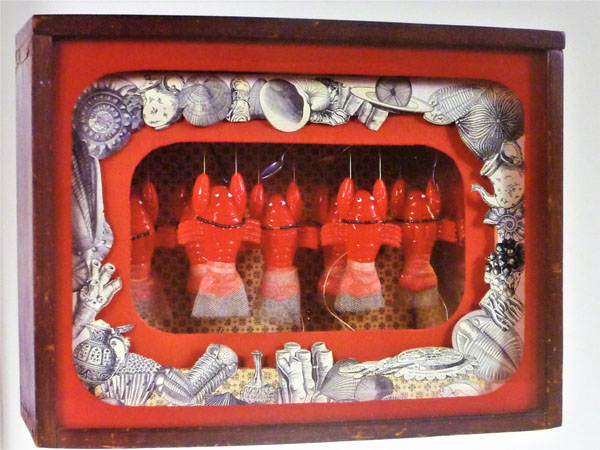 コーネルの作品を見たのは初めてで、他に箱の作品5点とコラージュ作品4点が展示されていた。コーネルの箱を見ると、小学生の頃に夏休みの図画工作の課題で海藻や珊瑚の絵を背景に糸で釣られた色んな魚たちが泳いでいる紙箱で作った水族館や昆虫の標本箱の記憶が蘇る。巧緻を極めた美しいコーネルの作品は童心を呼び覚まし、ノスタルジーを掻き立てる。
