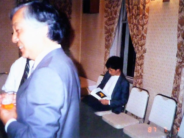 その晩には有楽町のレバンテという会場で瀧口修造を偲ぶ「橄欖忌」が催され、佐谷画廊の手配で私にもその案内状が届いていた。実験工房のメンバーで作曲家の秋山邦晴さんが世話人代表となり、瀧口綾子夫人、武満徹、吉岡実夫妻、漆原英子、北代省三、池田龍雄、岡崎和郎、篠原佳尾、岡田隆彦、吉増剛造、阿部良雄、海藤日出男さんなど、これまで写真でしか見たことがない錚々たる顔ぶれの集まりであった。私は佐谷さんや土渕さんの他に知る人もなく、場違いな所へ来たと感じながら来場者を眺めているしかなかった。武満徹さんが入ってきたときは、まるで武術の達人のように見えたし、当時私が最も傾倒していた詩人吉岡実さんにも近寄ることすらできなかった。吉増剛造さんは懇談に加わらず、独り椅子に座ってカタログを見ていた。綾子夫人にもこの時初めてお会いしたのだが、土渕さんの紹介でご挨拶するだけが精一杯だった。