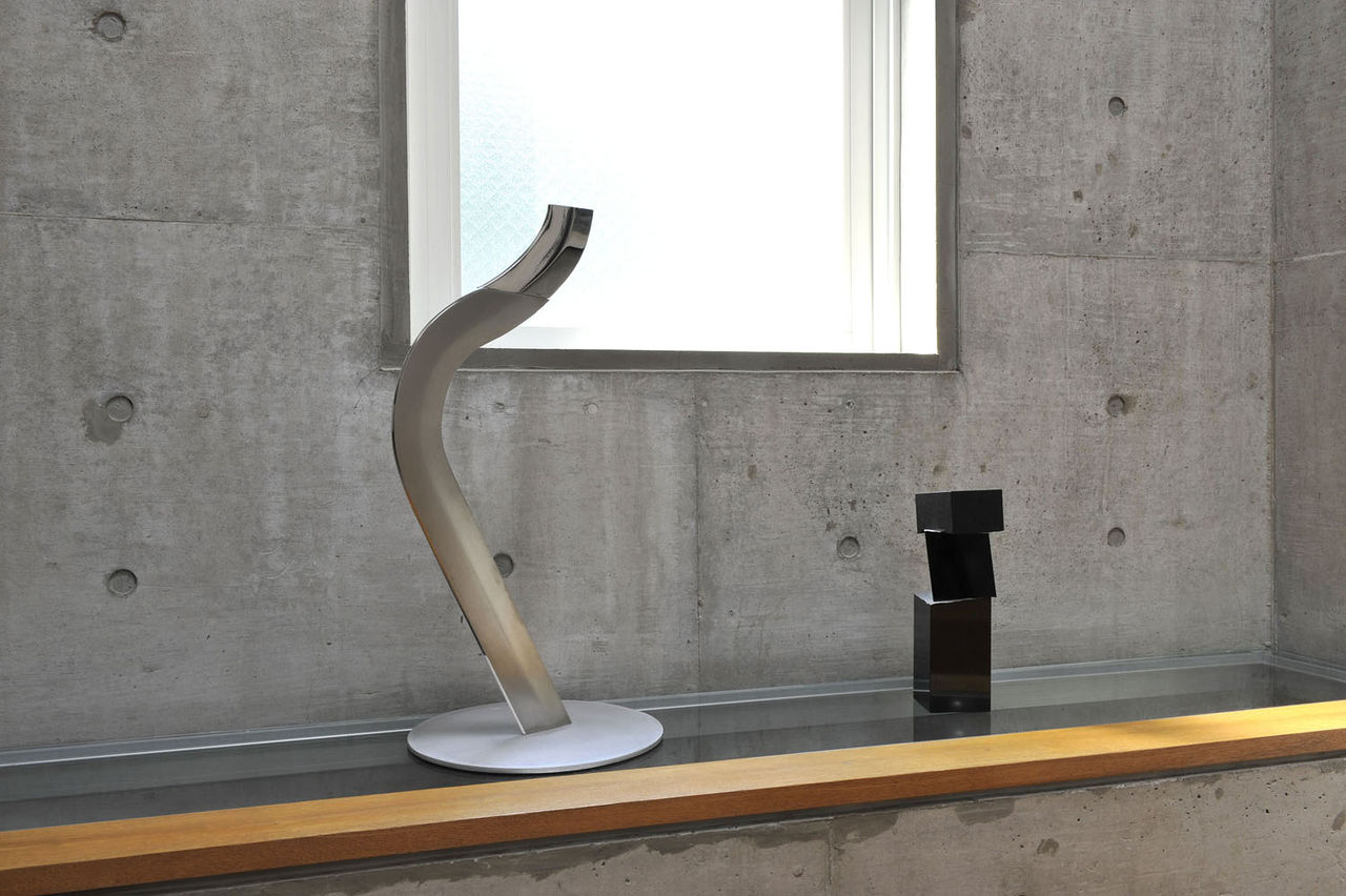 阿部勤先生の設計によるLas Casasはル・コルビュジエの流れをくむコンクリート打ち放しの豪快な壁面と、一階から二階にかけての床のタイル、三階の木の床面が絶妙なバランスを持つ快適な住宅建築ですが、そこに黒御影石による石彫を置きたいと思いました。