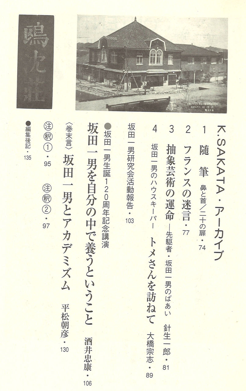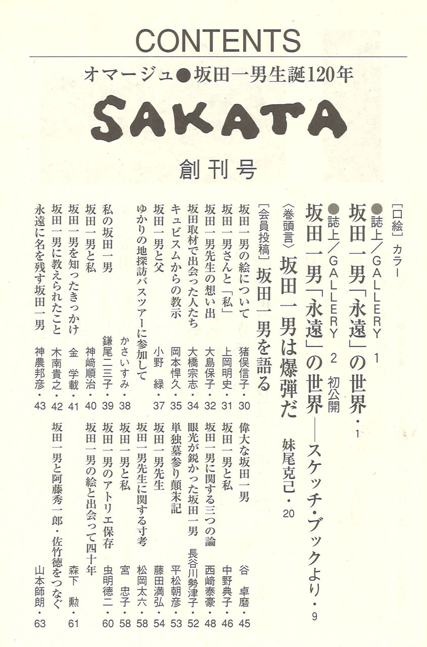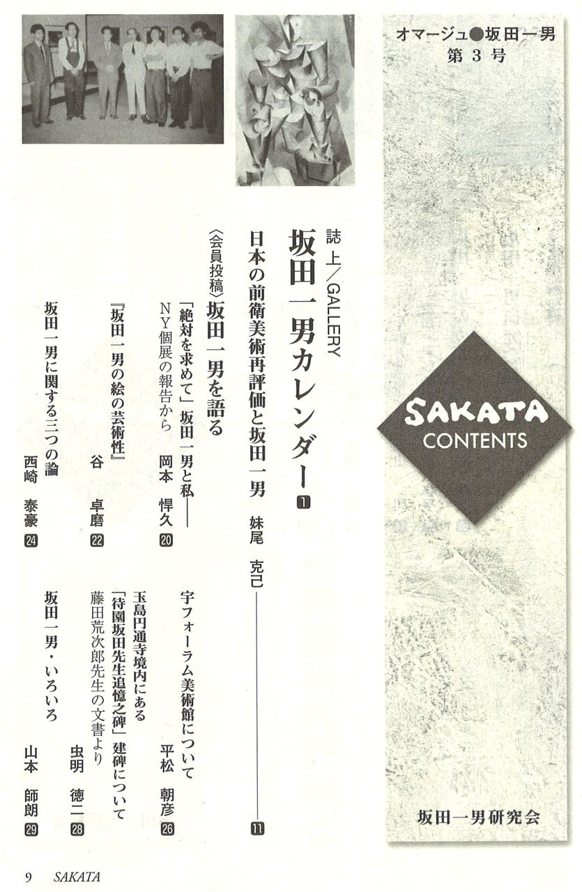 生誕120年を機に、当時岡山県立美術館の学芸課長だった妹尾克己さんたちにより2008年に「坂田一男研究会」が岡山で結成され、機関誌『SAKATA』 を刊行してきました。