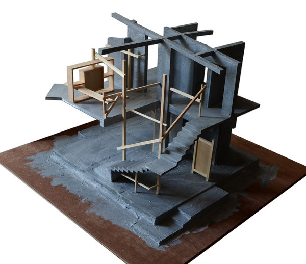 「日本の家」を求めるにあたって、行動と意志が先行した当時の彼らのように、自分自身が日本とインドの間を行き来する移動の軌跡(経験)自体を建築として具現化できないか。岡倉天心が「Asia is one」と高らかに宣言し、中国やインドに実際に彼自身が赴き現地の人々と思想を交わすことで、「アジア」と いうフィクショナルな領域を仮構したように、「日本」という幻影まがいの存在を幻影のままに、シャンティニケタンのこの計画で日本とインドの間を 巡る自分自身の旅を一つの物語として建築の中に架構してみようと考えた。