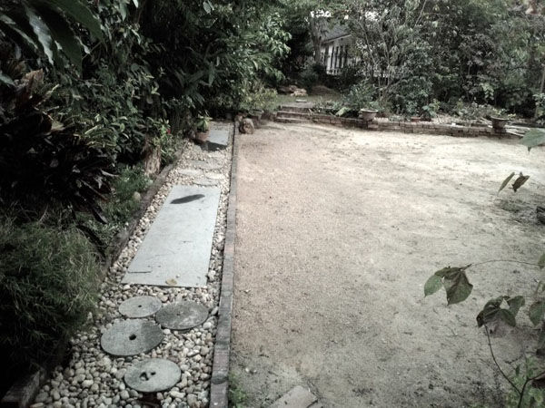 2施主がコツコツと拵えてきた庭。夏みかんや柿の木など、日本にも馴染みの深い草木が育っている。