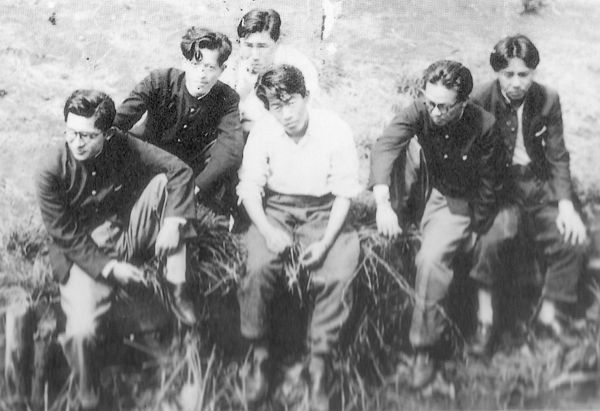 グループ「繪畫」のメンバー(左より浜田浜雄・石井新三郎・武内秀太郎・三輪田俊助・田中素生・田中坦三)