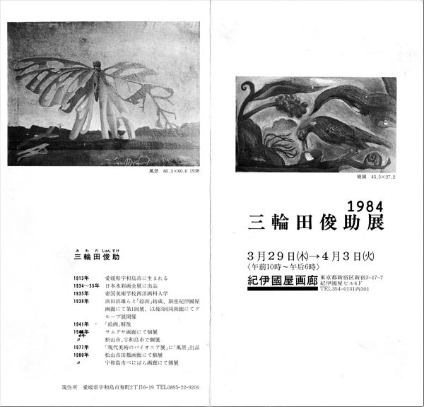 宇和島市在住の画家で戦前にシュルレアリスムの影響を受け、瀧口とも交流のあった三輪田俊助先生に当時のお話を伺いたいと思い、初めてご自宅を訪ねたのは1980年代中頃のことだったと記憶する。道路に面した生垣、奥の玄関へ続く煉瓦を敷いた通路脇の植込みや中庭の佇まいに植物を愛する画家のまなざしを感じた。