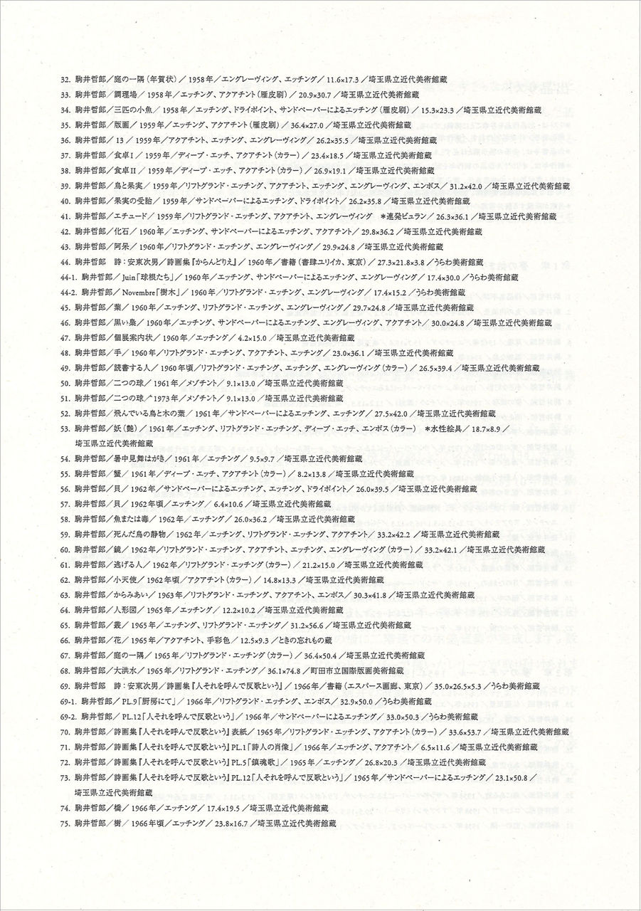 ●埼玉県立近代美術館「駒井哲郎 夢の散策者」展出品リスト