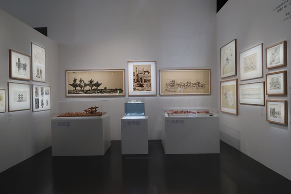 展示はほぼ年代順に並べられているが、そこで展示されているものを概観すると、世代によって、展示されている図面、ドローイングの傾向が明らかに異なることに気付く。この展覧会が出色なのは、ミゲルー氏の強い意志により、展示物は原則当時のオリジナルに限られていることである。通常の建築の展覧会では、図面、模型、写真などを駆使してその建築作品の理解を促そうとするが、ここでは例えば、ある建築では図面は一枚、もしくは模型が一点ということも多い(多くのものにはキャプションの横に、当時の写真が添えられている)。これは、個々の建築についての予備知識がない鑑賞者にとっては不親切ともいえるが、例えば後から清書された図面や最近撮られた写真などは、必ずしも、作者である建築家の意図を反映していない。今回企画側は、建築家という主体による表現に価値の重心を置いている。こうした展示方針は、建築家と表現の関係がはっきりと浮かび上がらせている。