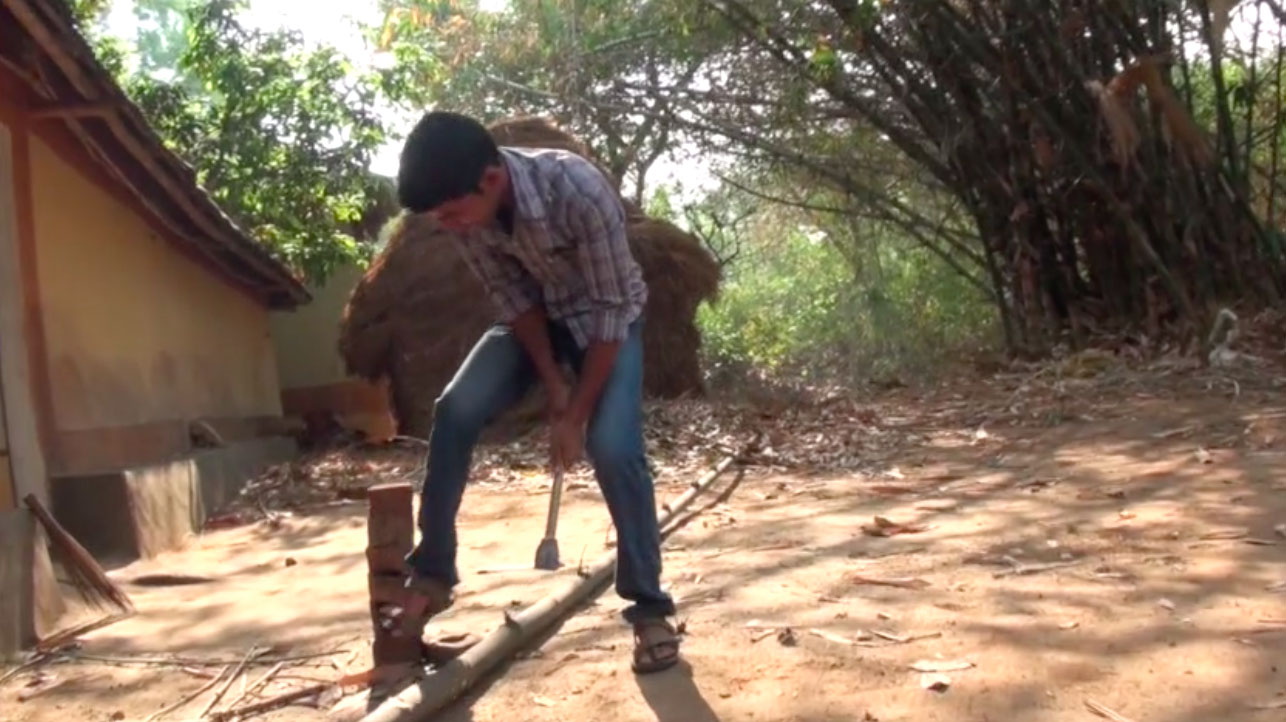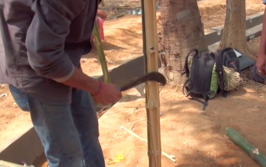 そんなプリミティブの探求を、3月のIn-Field Studioで試みようとしていた。期間中に行った村内での建設作業は、地元のSantal族の村出身で大工を生業としているケレンという名の青年に、資材の調達や材料取りを教えてもらいながら行った。彼はガタリと現地で呼ばれる曲がった短刀のような刃物とを使ってなんでも切っていたし、持ち手を反対にしてトンカチとしても使いこなしていた。ちなみにガタリはほとんど同じ形のものが床に固定されて、キッチンでの包丁にもなっている。