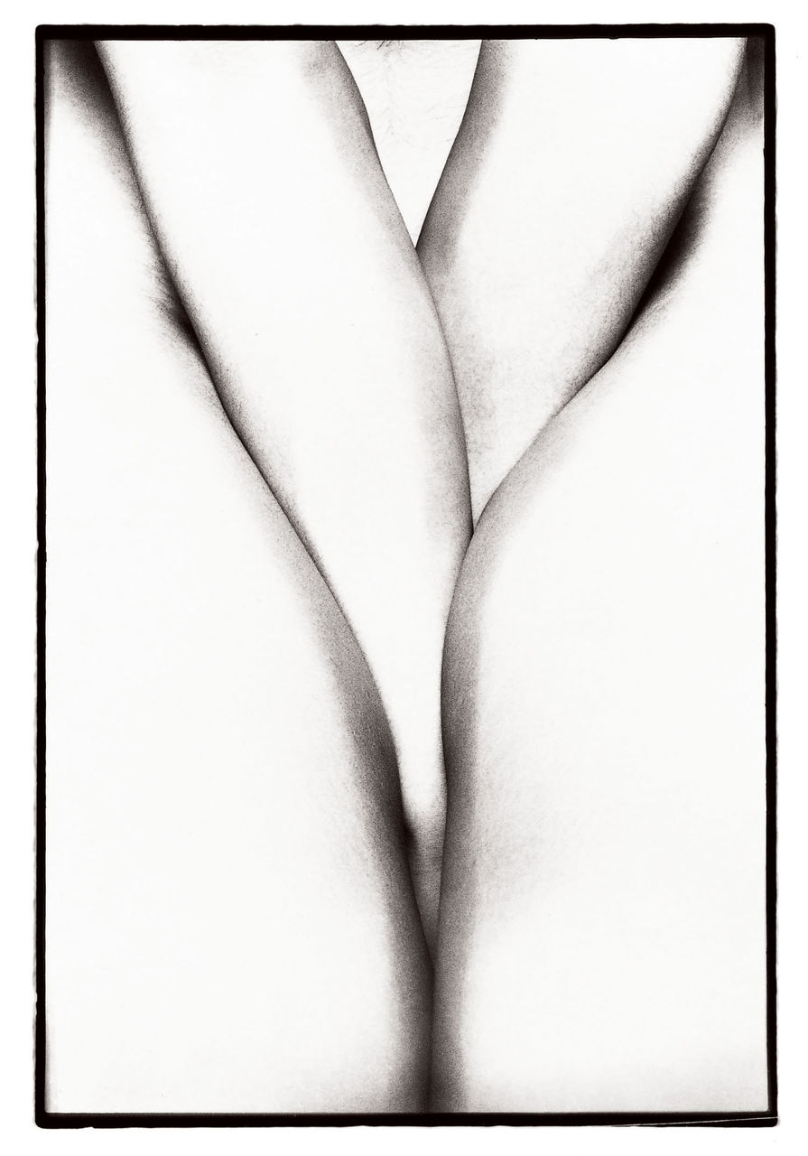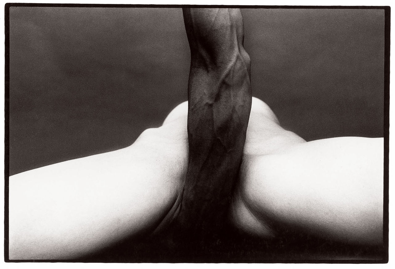 〈おとこと女〉以来ずっとあたためていたモチーフを満を持して撮影したもので、シンプルに抽象化されていながらエロスをも感じさせるシリーズです。当初土方巽と元藤燁子であったモデルを、土方門下のダンサーたちへとチェンジして撮影されました。このプリントは、グラビア印刷のマチエールに似ていると細江先生が気に入っていらっしゃるディジタル・ピグメントプリントによる大判の作品です。