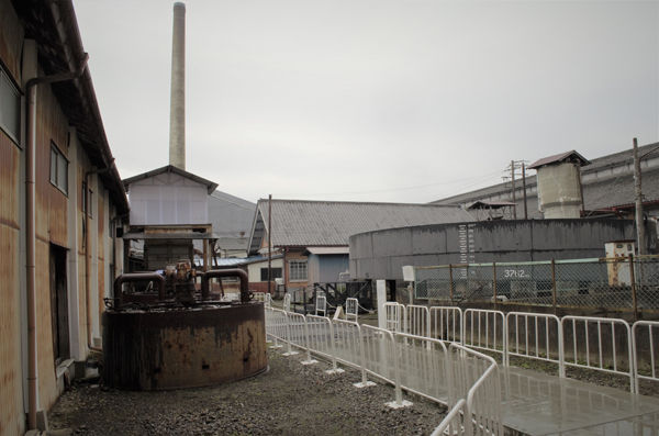 グレーの巨大な円盤は、UFOではなく鉄製の水槽である。明治8年頃に設置され、その貯水量はおよそ400tにもなる。奥には長い煙突があり、これらで先に紹介したように生糸を巻き取る際のお湯を沸かすために使用されていた。