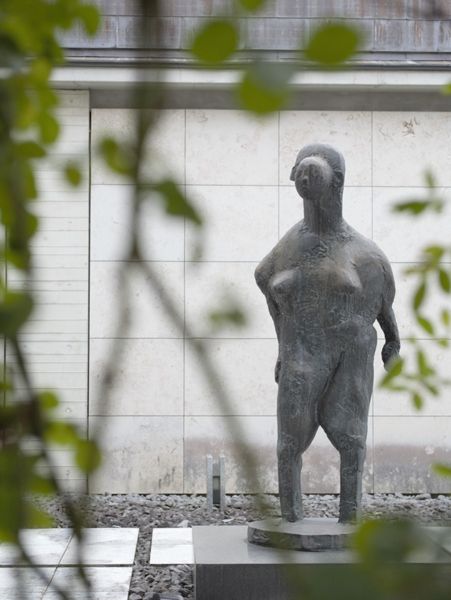 入口に続く回廊を歩いていると、来館者を観察するような視線を注ぐ女性像がある。見慣れない者を見て「あら、遠いところよく来たね」と声を掛けてきそうな表情を浮かべている。こちらは、掛井五郎《母》(1991)の作品である。
