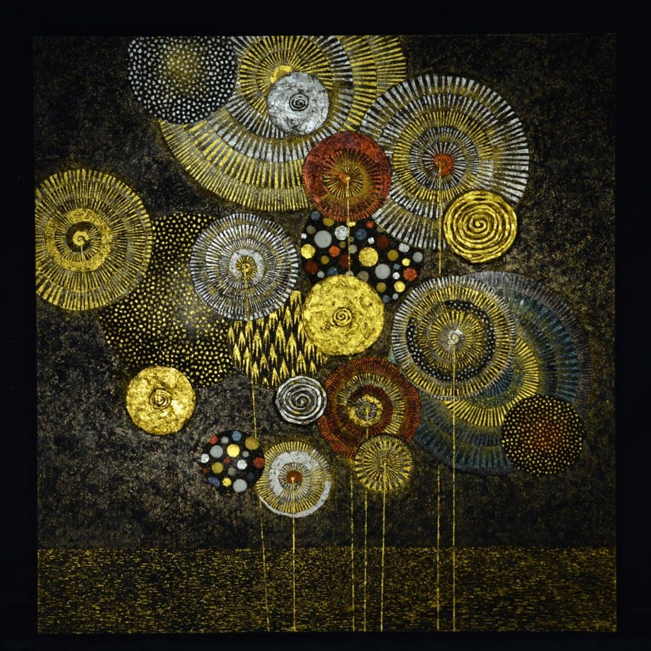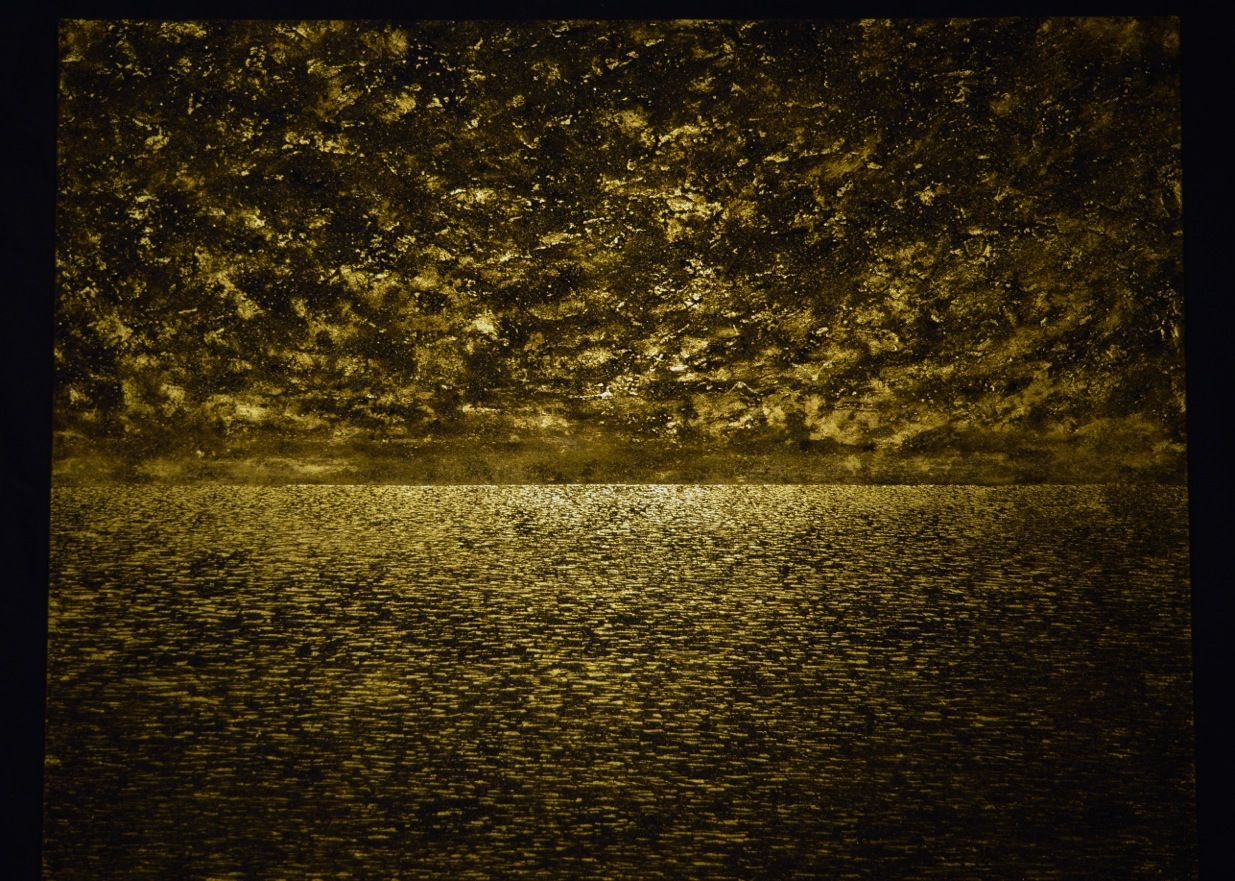 2016年 箔画(木パネル、漆、金・銀・プラチナ箔、石炭、樹脂、アクリル絵具)