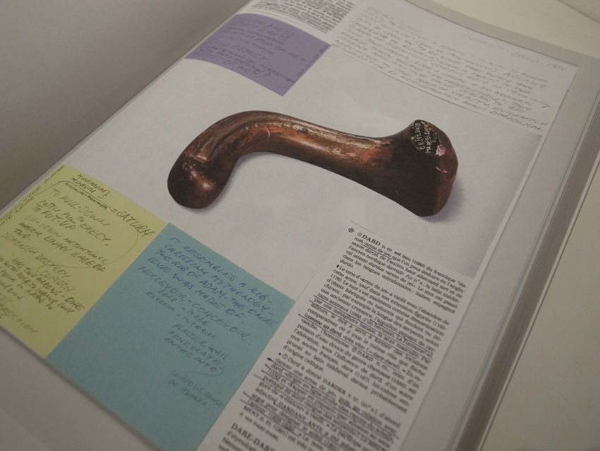 Bethan Huws著『Research Notes』(2014年刊)の『貞淑さの楔』掲載頁(343)、