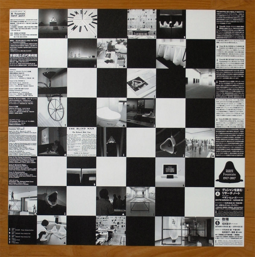さて、京近美では、アーティスト・トークで配付された平芳幸浩氏の参考資料8枚(両面刷り)の他に、折り畳んだ紙を拡げ、2枚並べてチェス板の64マスを演出するチラシなど、紙モノ好きの琴線に触れるアイテムが、続々と登場している。尚、来年1月5日(金)からの最終回(Case-5)は、アーティスト・毛利悠子さんの『散種』。批評家・浅田彰氏とのトークや、富山県美からの特別ゲスト上洛も予告され、今から期待が膨らんでいる。