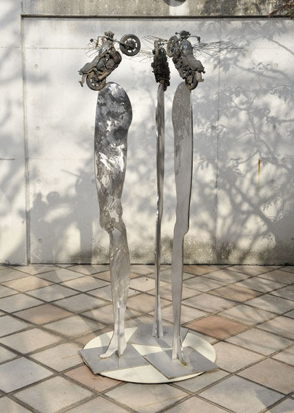 お披露目(7月7日)のときには小林泰彦さんのステンレス彫刻「No.148」を展示しました。