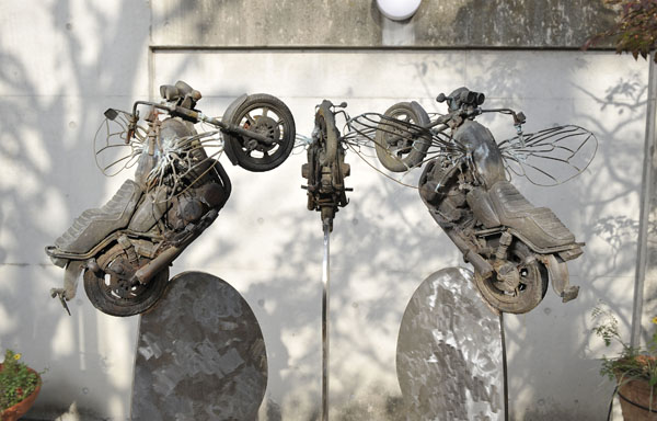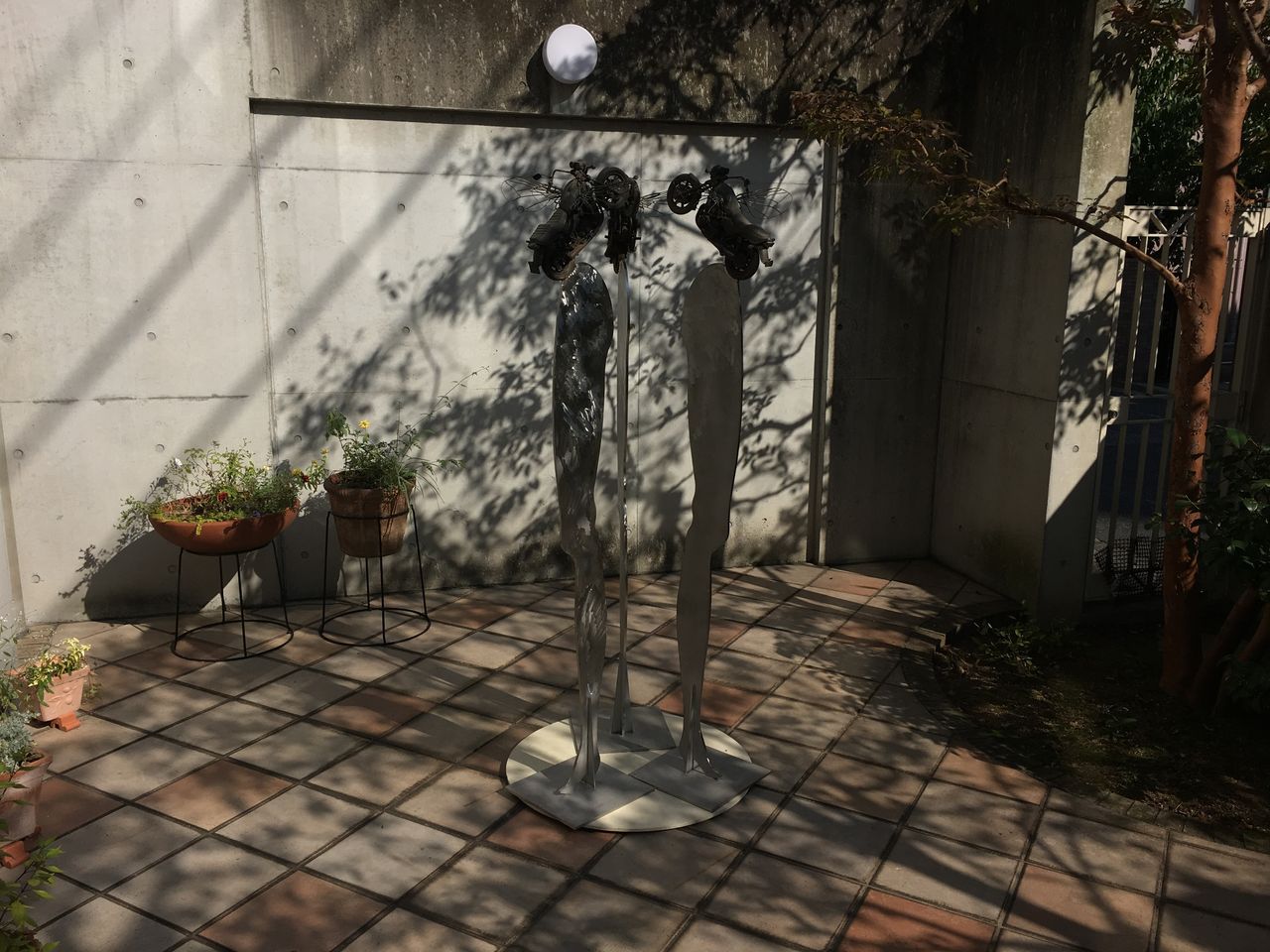 大家さんが年に一度、植木屋さんを入れて剪定してくださるのですが、それも一段落したので、このたび、島根紹さんの彫刻作品を展示しました。