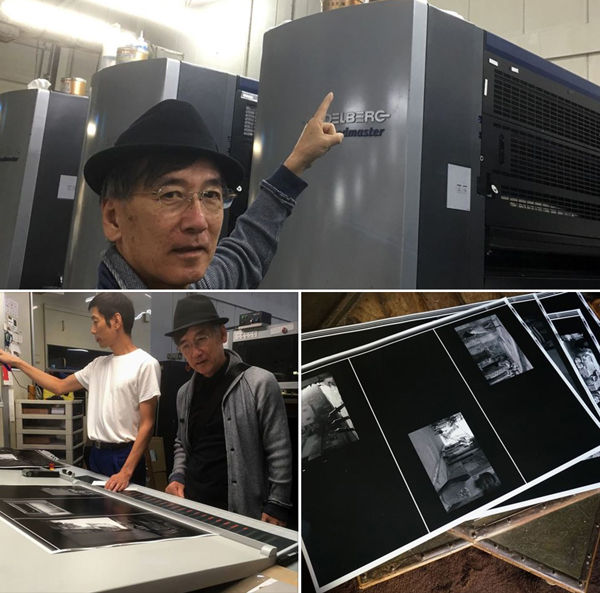 <写真8>印刷所で写真集の最終チェック。最新鋭のドイツ製印刷機ハイデルベルク・スピードマスターの前で