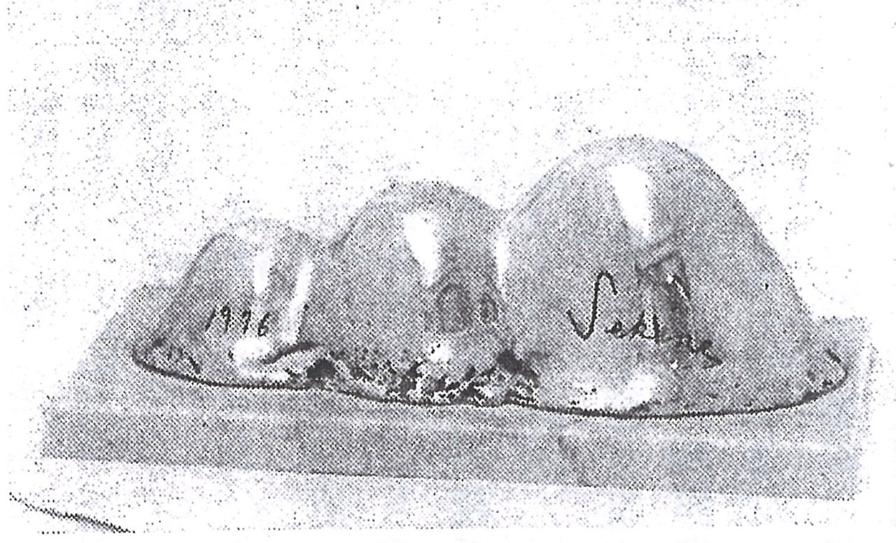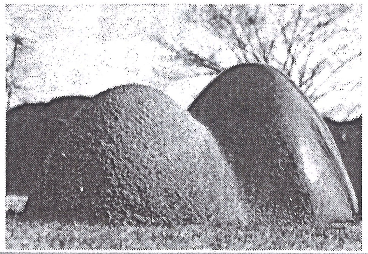 関根伸夫5_00002左に掲げた写真は、特に自然化した状態をつくり出すために野外にもち出して撮影したものである。多分にこういった発想は自己の小さな内部に止まりやすいが、これを拡大して土木的に、自然空間でのスケールに置きかえてみれば、慶州のこの古墓群の光景に、その具現の大きさを知らされた様に思われる。正確にいうなら、私が構想した作品はすでに太古より、もっと壮大で、もっと世界をともなった次元で具現されていたのである。やられたな、と思いつも、しかし、私自身は決して彫刻する行為を止められないと思う。なぜなら、私自身の行為をはるかに超えて存在する世界を体験することは、また遠く続く行為を確認することでもある。太古人のおおいなる夢の跡を確認することは、現代人たるわれわれの行為とも決して変わることのない世界を共有することである……と、そんな憶いをはせながらまた私は己れの行為を誇大妄想的にも正当づけている自分に気付きながらも、太古人の行為を尊敬してやまない態度を保持している。しかも相として、表情として顕在化させるべき世界を予感しているといったら笑われるだろうか。