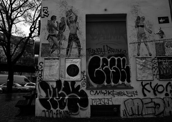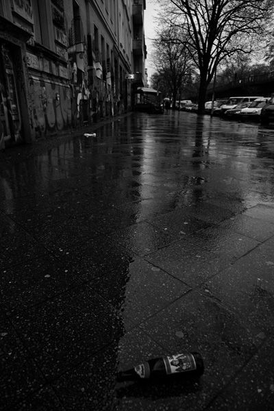 ベルリン郊外の旧東ドイツエリア。さすがにこのあたりまで来ると観光客の姿は皆無。ポップでえぐい感じのする落書きも街角のあちこちにあり、 少し危険な香りのする地域だ。冷たい雨の降りしきるなか、よそ者を警戒するような視線を感じながら未知の路上をさまよい歩いた。