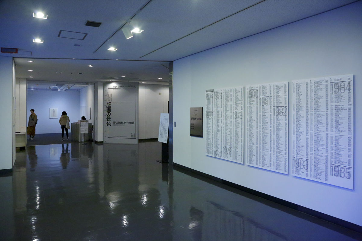 会場入り口のパネルには1300項目の展覧会・イベント開催記録が掲示されています。その一つ一つの固有名詞こそが、現代版画センターであったと、亭主は思っています。