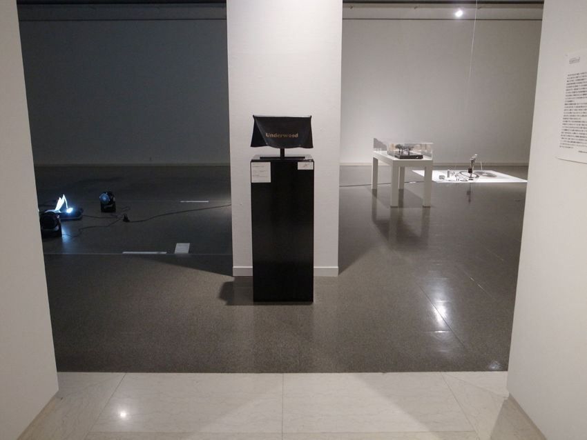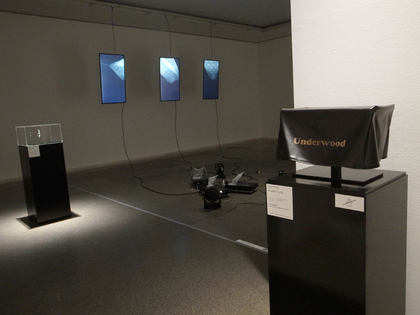 「日用品と音や光、水などを組み合わせたインスタレーション」で知られ、世界的に注目される毛利悠子の発表なので、2015年の『モレモレ: 与えられた落水』がどんな変化をするのか、いろいろと期待をしながらの拝見だったが、足下に置かれた「検眼図、眼科医の証人」を模したステンレスの形状や、「欲望の磁気発電機」の辺りに置かれた扇風機とスキャナーのチープな仕様に気を取られて、《大ガラス》の三次元的展開への構想には思い至らなかった。もちろん、彼女は会場に掲示したコメントで、その場を「厚みを持った2次元(=3次元)は4次元の射影である」とし、「鑑賞者はすでに《大ガラス》のなかにいる」との手掛かりを与えているので、わたしの方が迂闊なのだけど。コメントには「大ガラスの中味の雑味が目立つのはこの際お許しいただくとして」と、自身の持ち味にも言及した部分があり、個人的な戸惑いを述べるのは礼を失した行いであるのだが、1メートルも越えるような展示壁を挟んで拡がる「独身者」と「花嫁」を繋ぐケーブル間の空洞が、デュシャンが《大ガラス》で「重力の監視人」と「ボクシングの試合」を放置したまま未完成とした心情と解離しているようで、嫌なのだ。──好き嫌いを言っちゃ、お終いなんだけど。