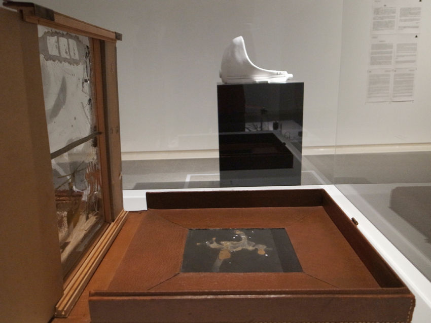 デュシャンの精子が飛び出し、膣ならぬ『泉』に侵入する様を視覚的に実感できる配置は、今回のcase-5における出色の風景であり、これだけの接近を許す展示は初めてのように思う。年月を閉じ込め、経年変化したセルロイド上の気泡(?)を含む、歪んだ《大ガラス》越しに『罪のある風景』を見ながら、エロティックなデュシャン像のしたたかさを改めて考えた。幾万の精子たちが夢見た世界、一個体にしか開かれない扉の向こうで、彼の実際の子供へと着床したのかどうかは判らないが、1946年とすれば現在72歳、会いたくもあり、会いたくもないような複雑な気持ちである。今回のCase-5に関連した毛利悠子とのクロストーク(1月26日(金))で、批評家の浅田彰は、キュレーション・タイトルとした『散種』にふれ、難解なフランスの哲学者ジャック・デリダの用語を平明に解説し(展示に合わせたということだけど)、デュシャンとデリダは女性にもてたと前置きしながら、二人の態度は「種をまき子供ができたら責任はとると、認知するとか養育するとかとは別に、自分は対応すると」話されたけど、どうだろう── わたしに撒き散らすというのはそぐわないが(これは、デュシャンとは関係ないけど)、デュシャンの言説や視覚的な作品が、時間と場所を無分別に「意味を繁殖させて通常の意味論から空間を破壊する」。他者の作品や人生に対するデュシャンの寂しげな距離感は、プラトン的世界に生きているコレクターとしては、実践できない態度であり、自己弁護的にデリダの著書『散種』がスイユ社から刊行されたのは、デュシャンが亡くなって4年後の1972年だった事を補足しておきたい。