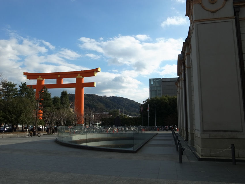 左から平安神宮大鳥居、京都国立近代美術館、京都府立図書館---